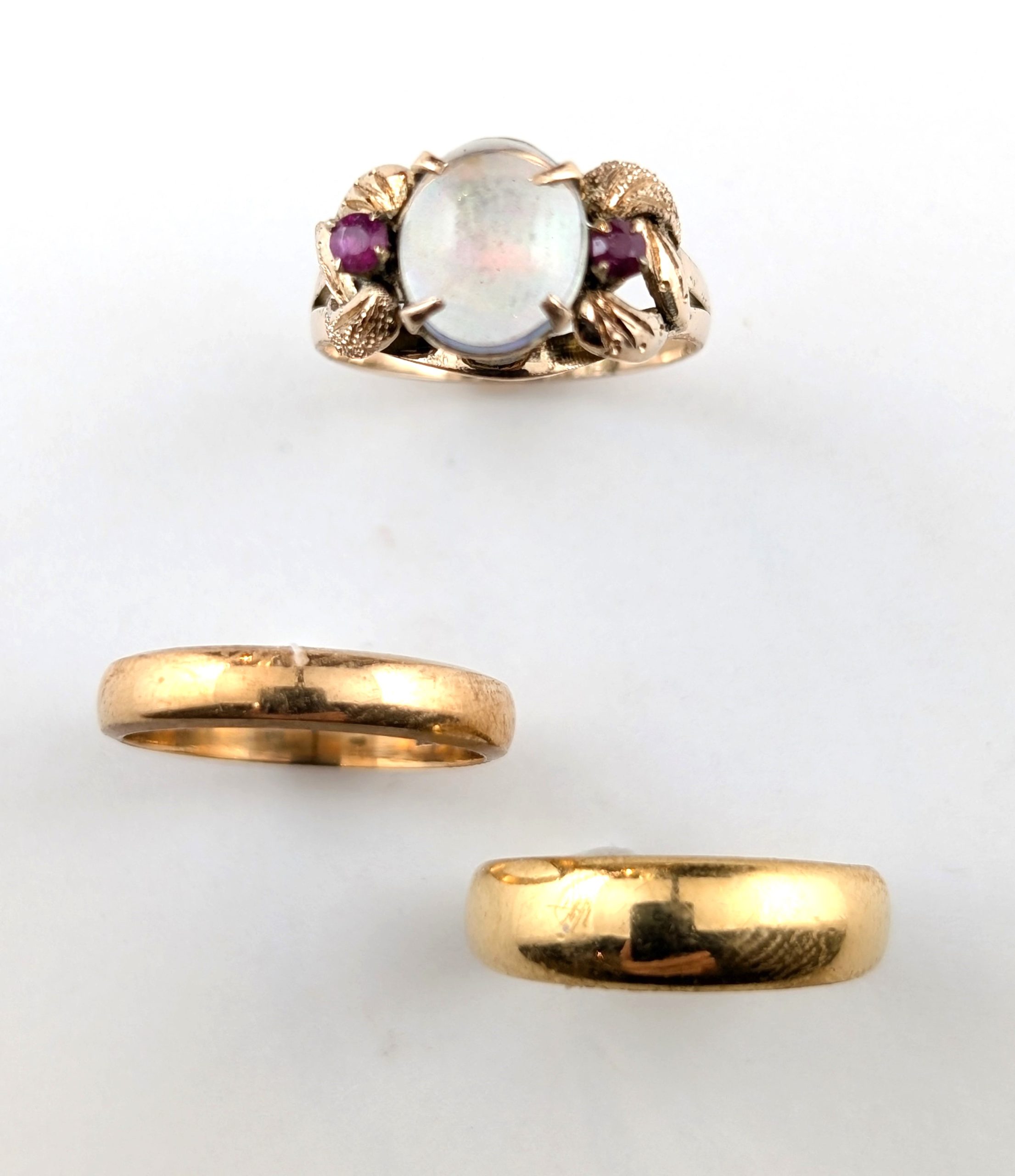 メキシコオパ-ルにルビ―が添えられたリングと2本のリング使って新しいリングが生まれました。